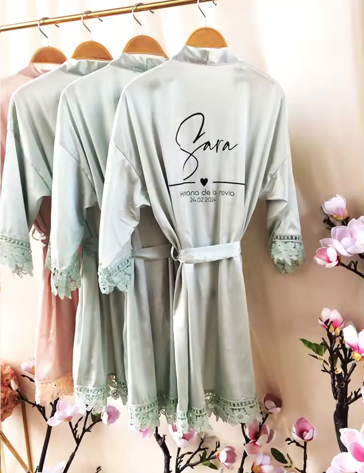 Descubre la elegancia y el confort con nuestra bata de satén personalizada para novias. Con un tacto increíblemente suave y un acabado súper bonito, esta bata es perfecta para esos momentos especiales antes de dar el 'sí, quiero'. Personalízala con tu nombre o una frase significativa para hacerla aún más única. Ideal para lucir radiante mientras te preparas para el gran día, ¡te encantará cómo te sientes y cómo te ves! Haz de tu experiencia nupcial algo inolvidable con esta hermosa bata que combina estilo y comodidad.