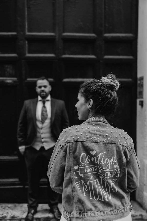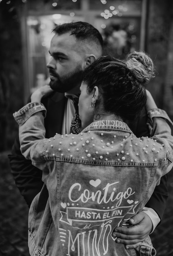 Cazadora para una novia diferente, atrevida, que busca algo distinto, llamativo y único. Si te identificas y defines así, entonces te encantará conocer nuestra colección de cazadoras personalizadas para novias. ✨
